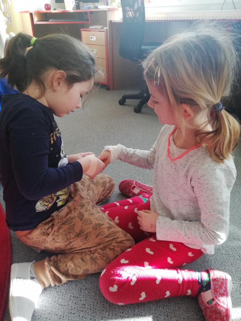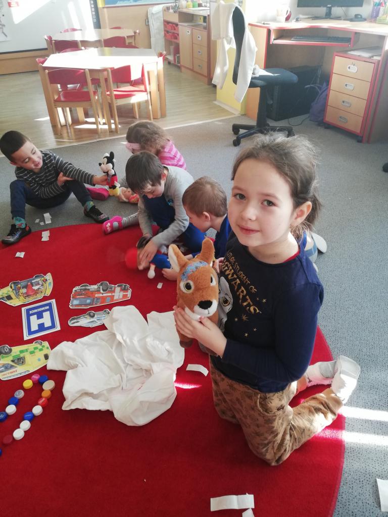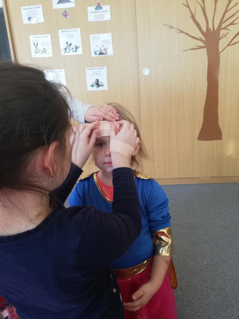 Téma o lidském těle bylo plné pestrých a zážitkových činností včetně nácviku 1. pomoci a hry na záchranáře.