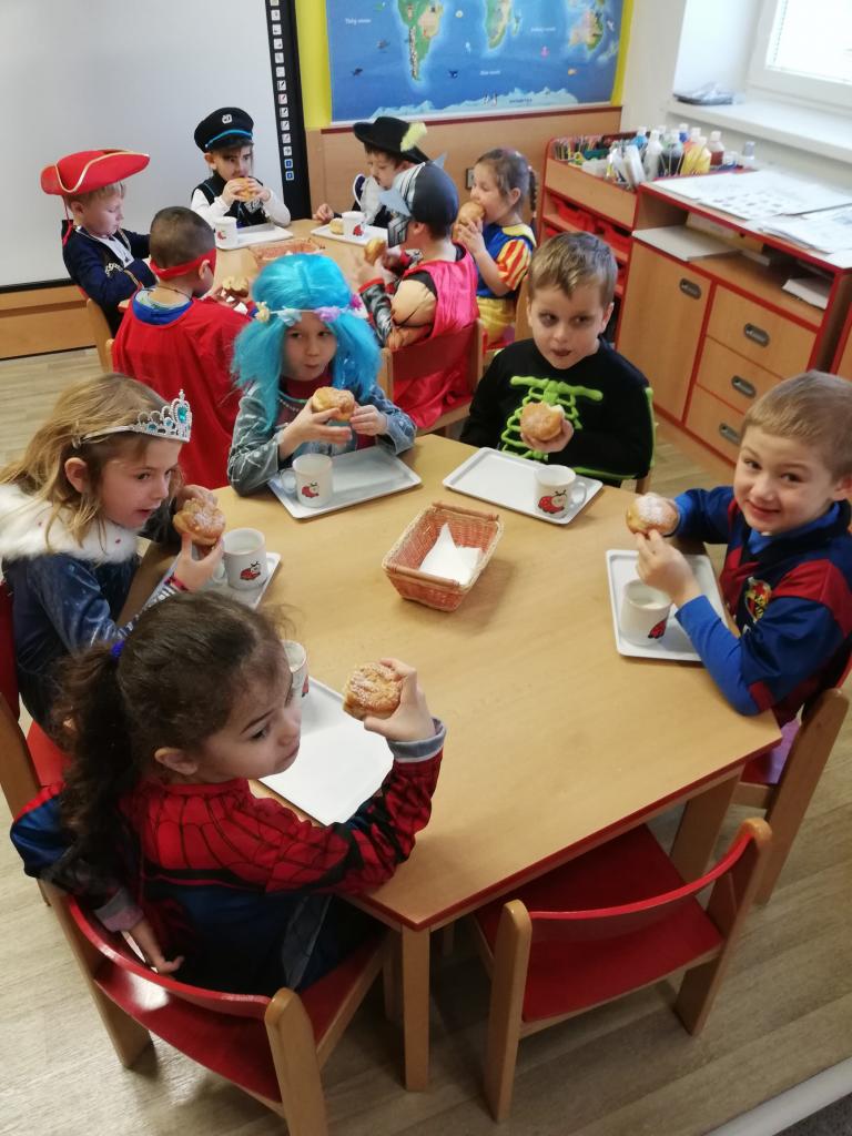 Konečně jsme se ve zdraví dočkali maškarního karnevalu. Děti si s radostí užily svých kamarádů, masek, tance, soutěží a samozřejmě nechyběly ani masopustní koblihy, protože když tradice, tak se vším všudy .-) Děkujeme panu starostovi za finanční příspěvek a rodičům za krásné maskování dětí:-)
