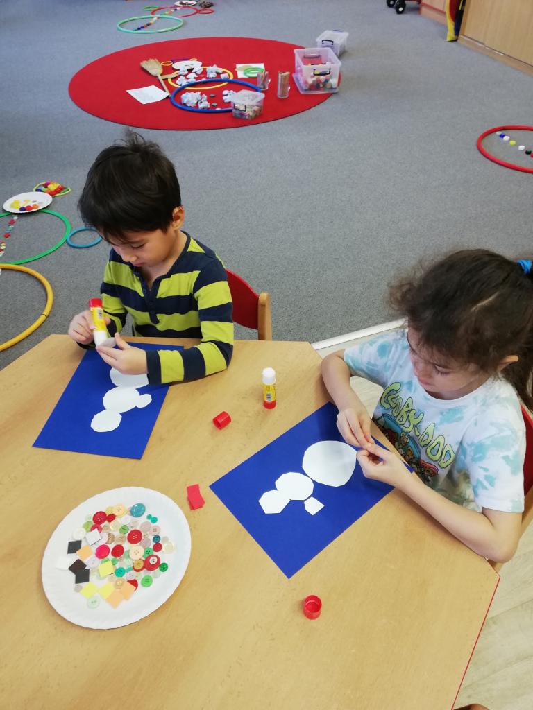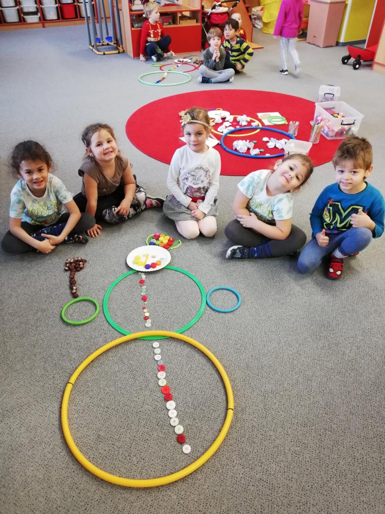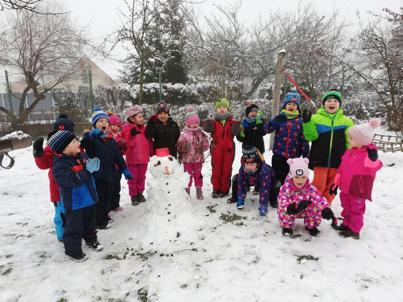 Tak dlouho jsme si povídali o zimě, sněhu, krmítka děti připravily, sněhuláky vymýšlely...až nám nasněžilo :-)