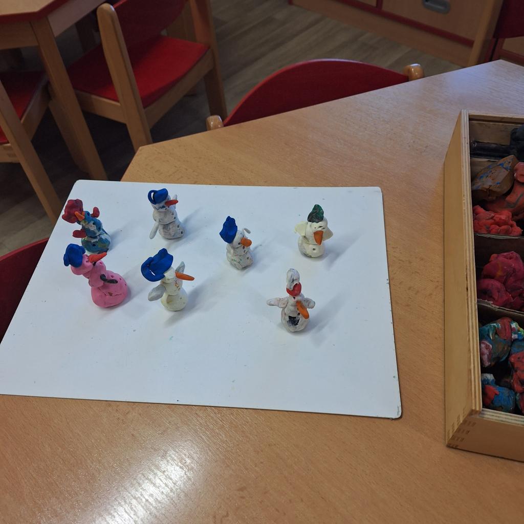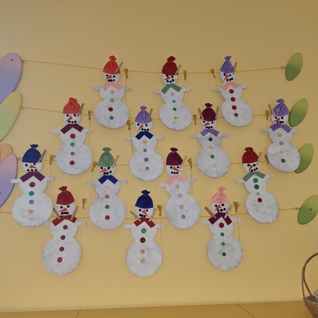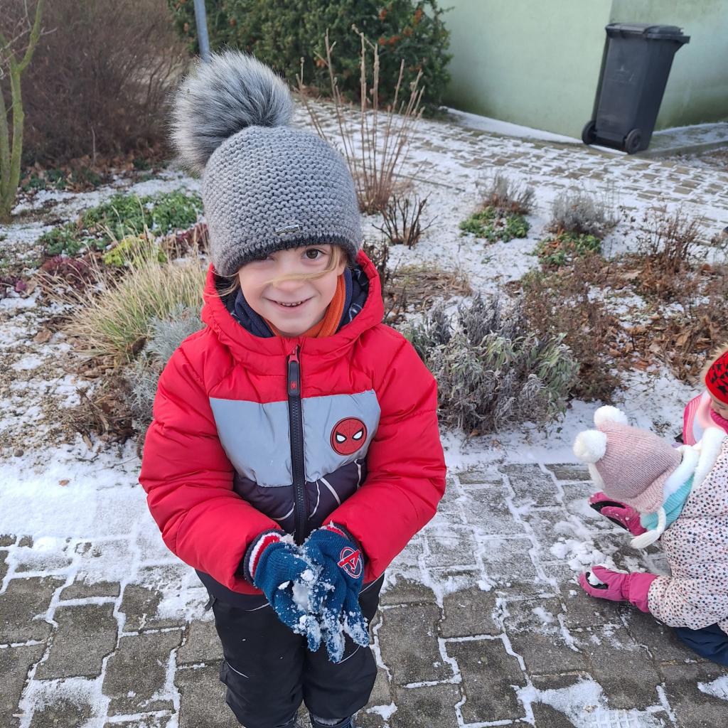 Sněhu nebylo mnoho, ale přesto jsme si poradili, sněhuláčky postavili :-)