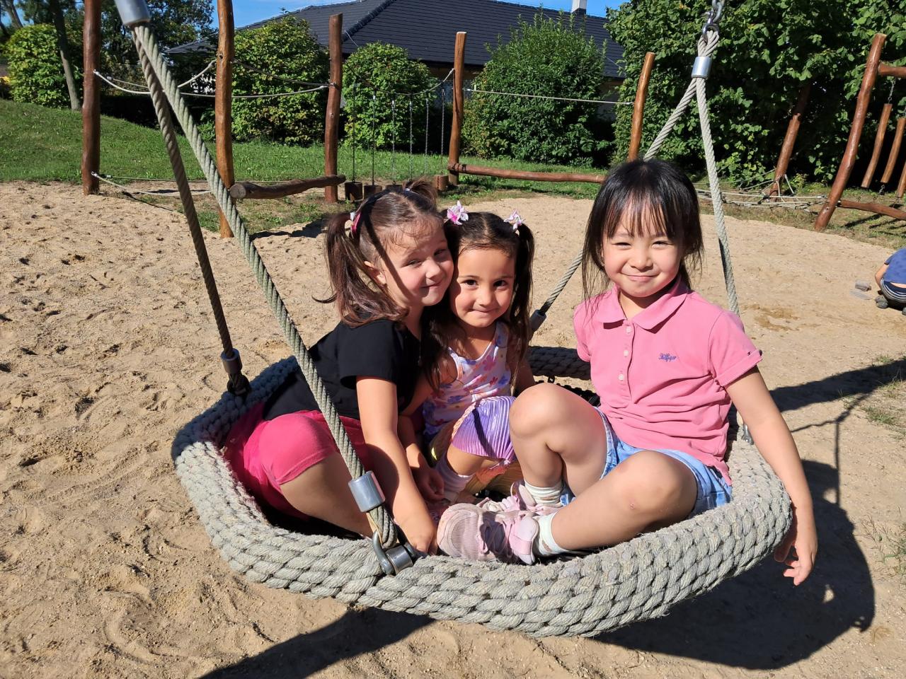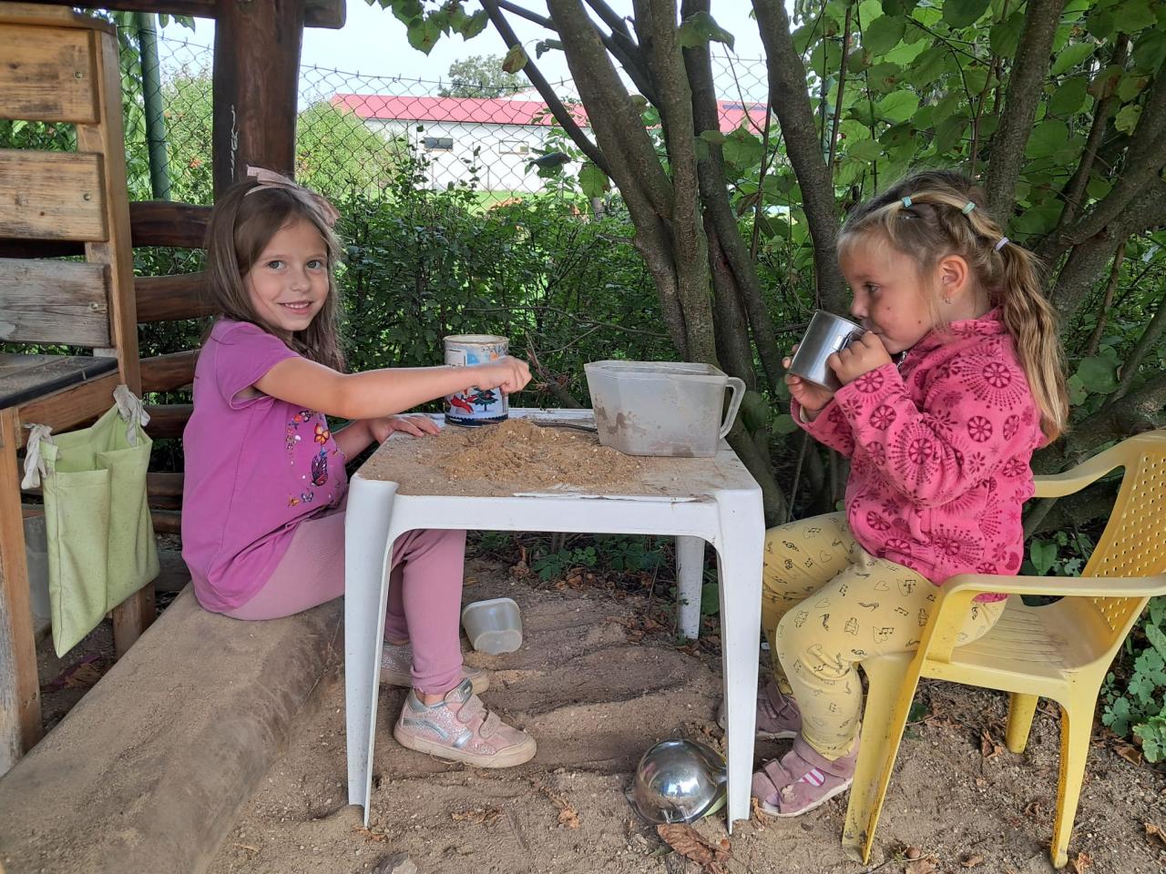 Počasí nám zatím přeje a tak hodně času jsme na naší zahrádce. Hrajeme si, poznáváme blízké okolí a navazujeme nová přátelství .-)