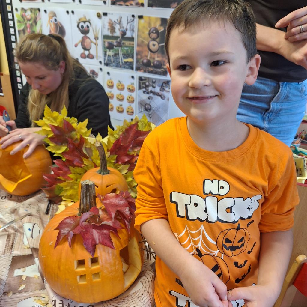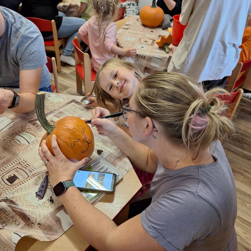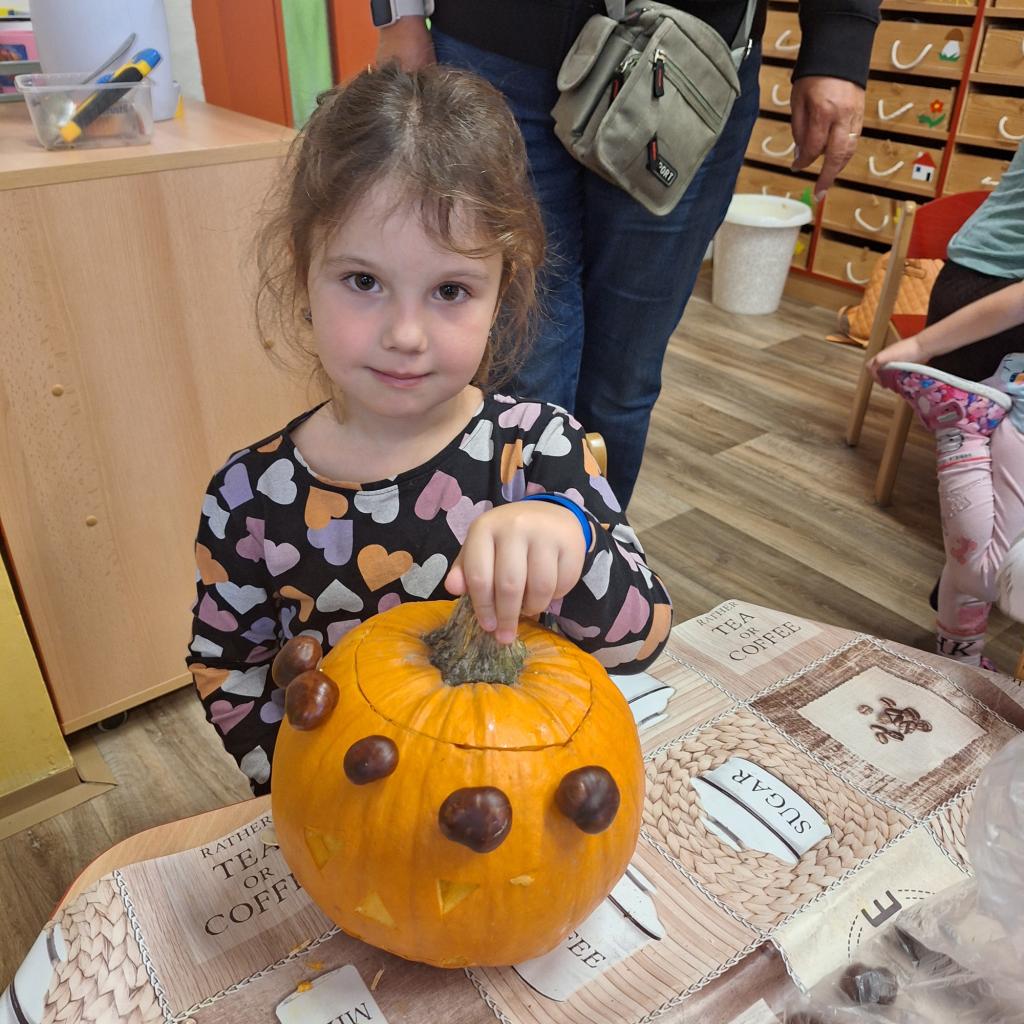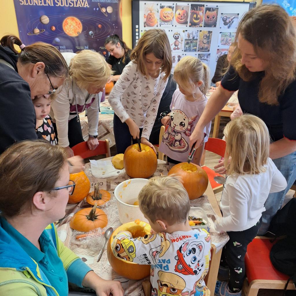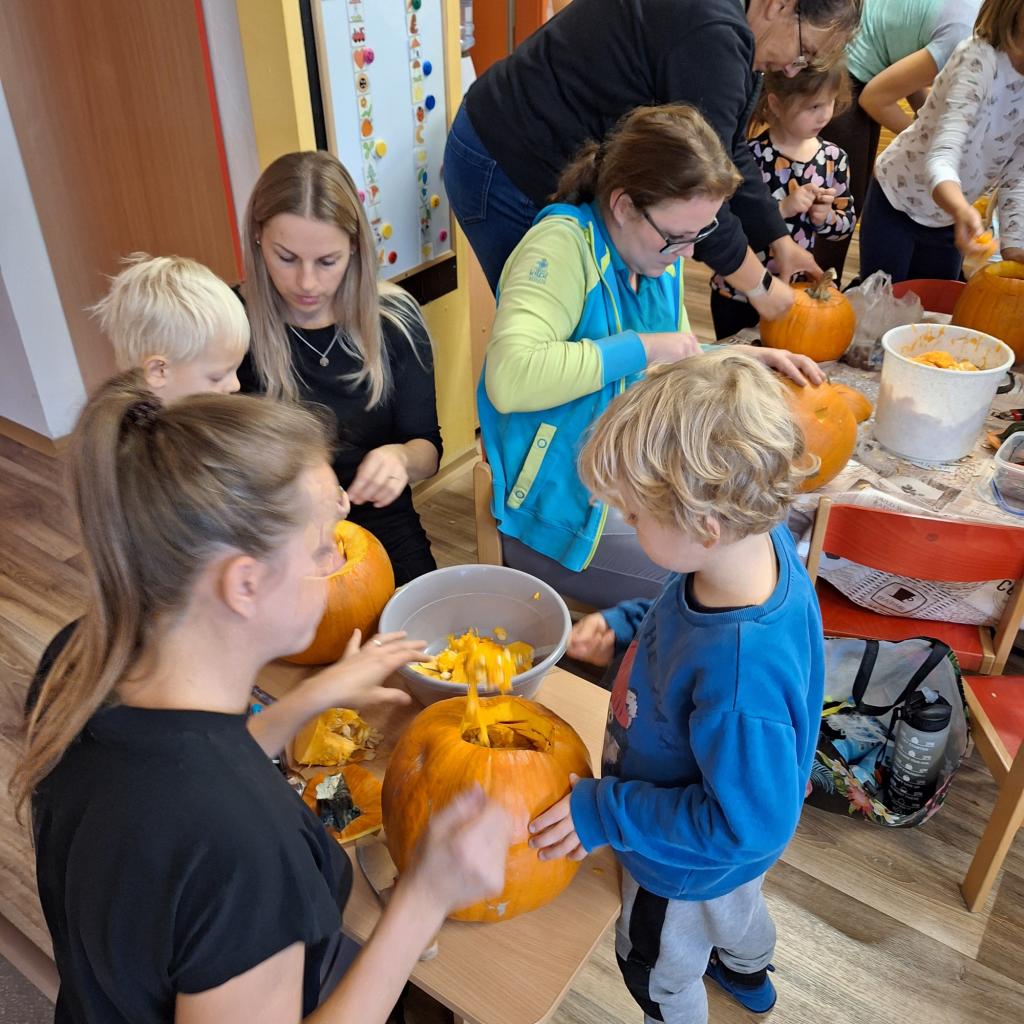 Za veliké účasti rodičů, sourozenců i prarodičů proběhlo velmi příjemné podzimní odpoledne. Každý si dle své fantazie vytvořil dýňáčka. Výrobky byly velmi rozmanité a obdivuhodné! Děkujeme všem za milé setkání a spolupráci. Nechť vám vaše strašidýlka, indiáni, kočičky atd.. hezky za okny svítí .-)