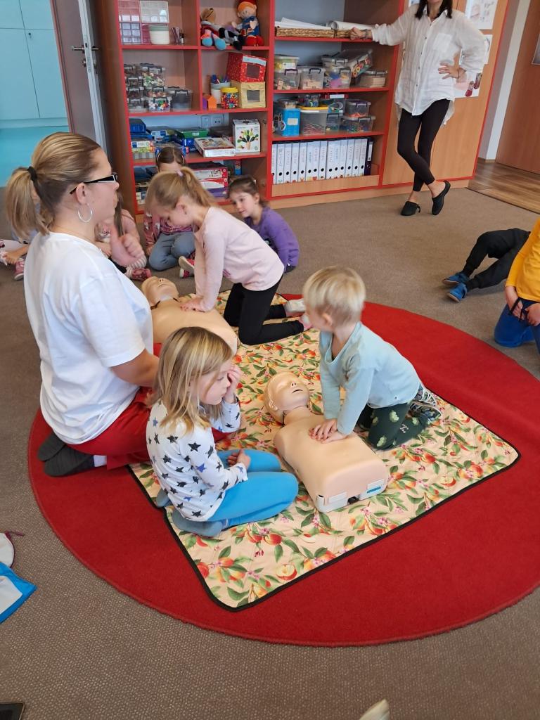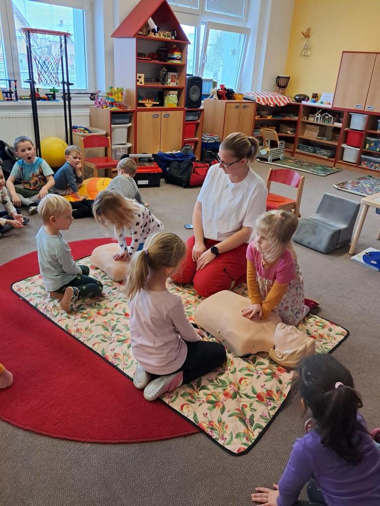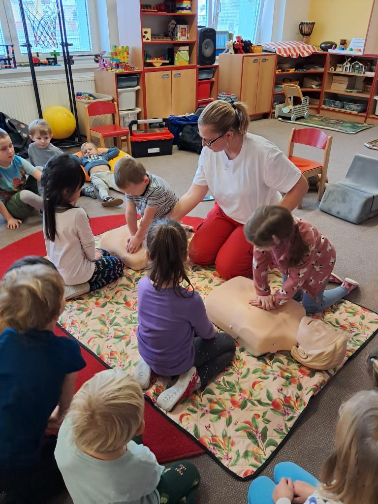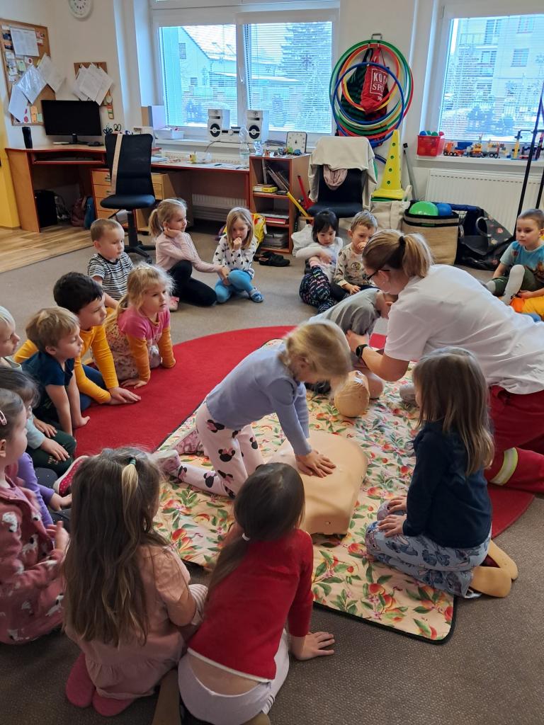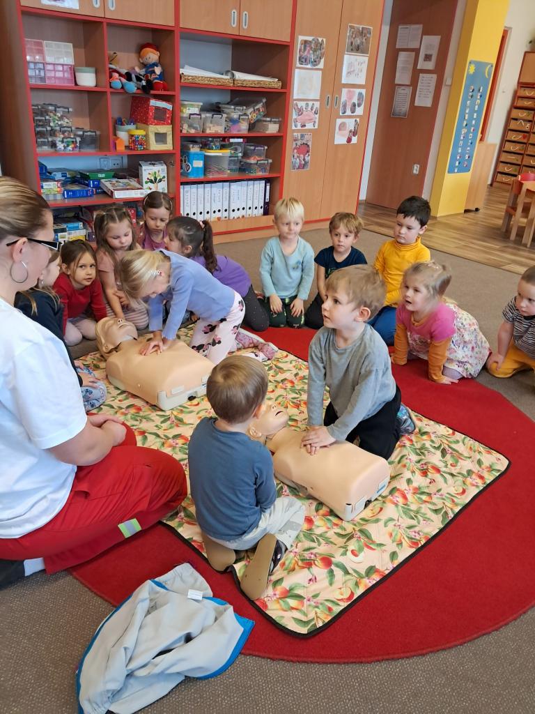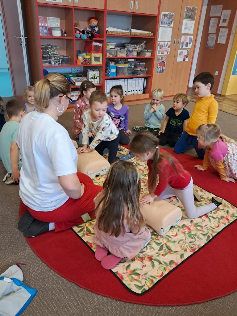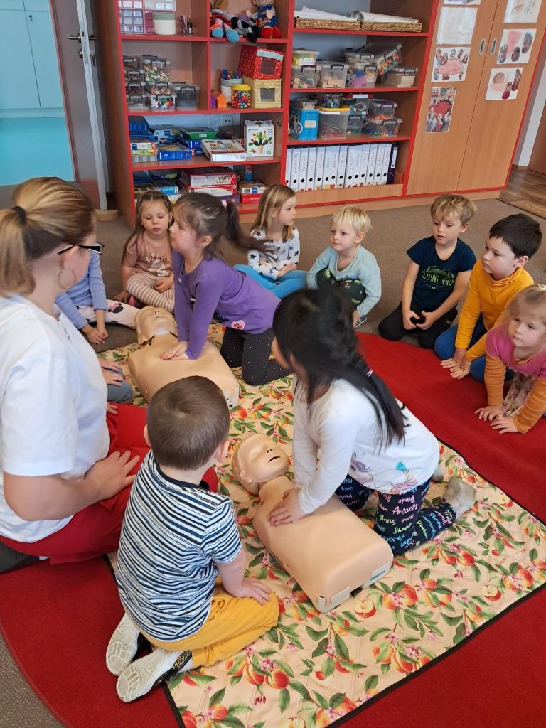 Každoročně v rámci tématu o člověku opakujeme jak je důležité pečovat o své zdraví a také o možnostech záchrany lidského života a 1. pomoci. Tentokrát jsme zachraňovali s méďou Bolístkou a došlo i na pokus záchrany paní učitelky tedy dospělé osoby. Děti si vedly skvěle, ale kéž jsme zdraví.-)