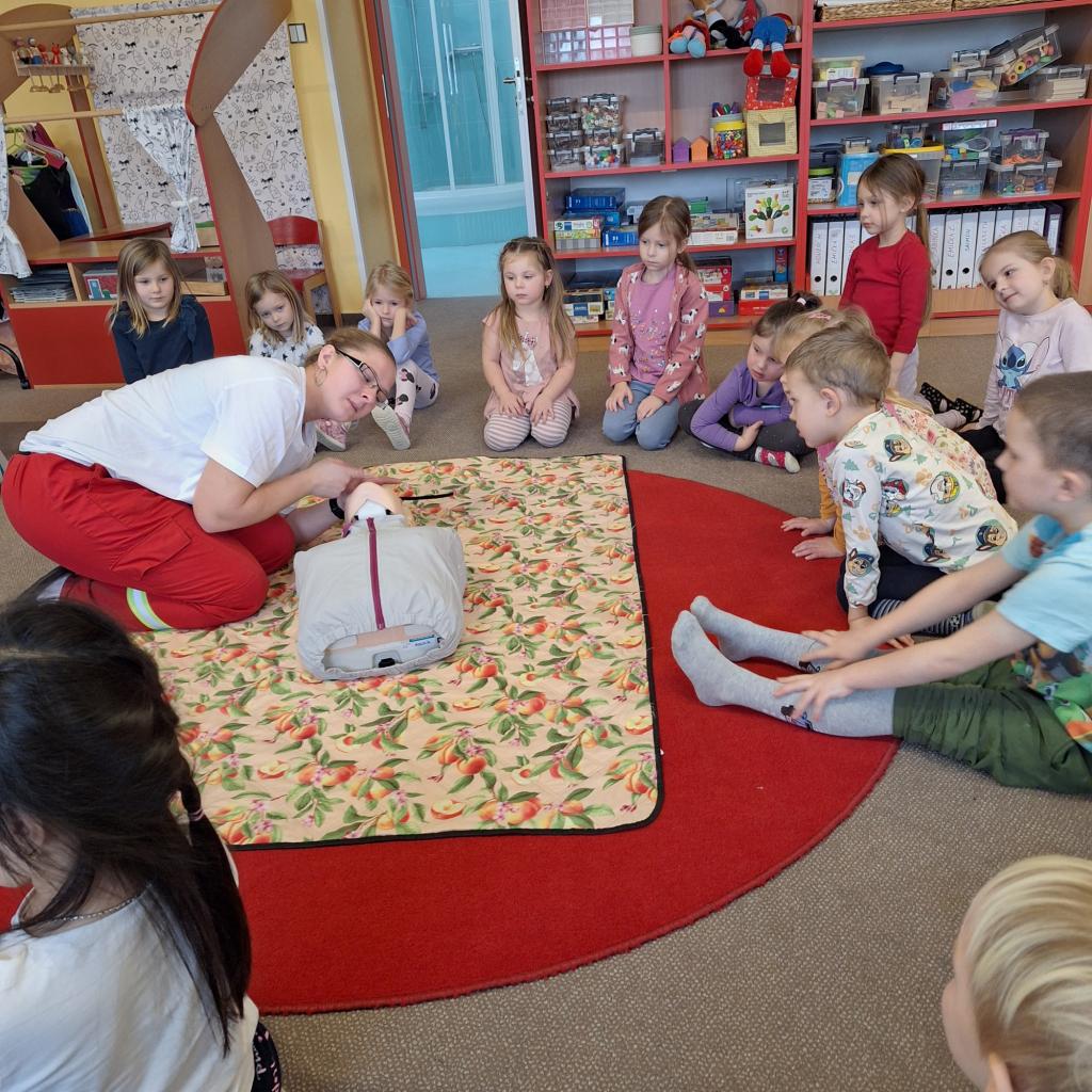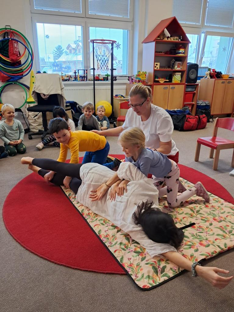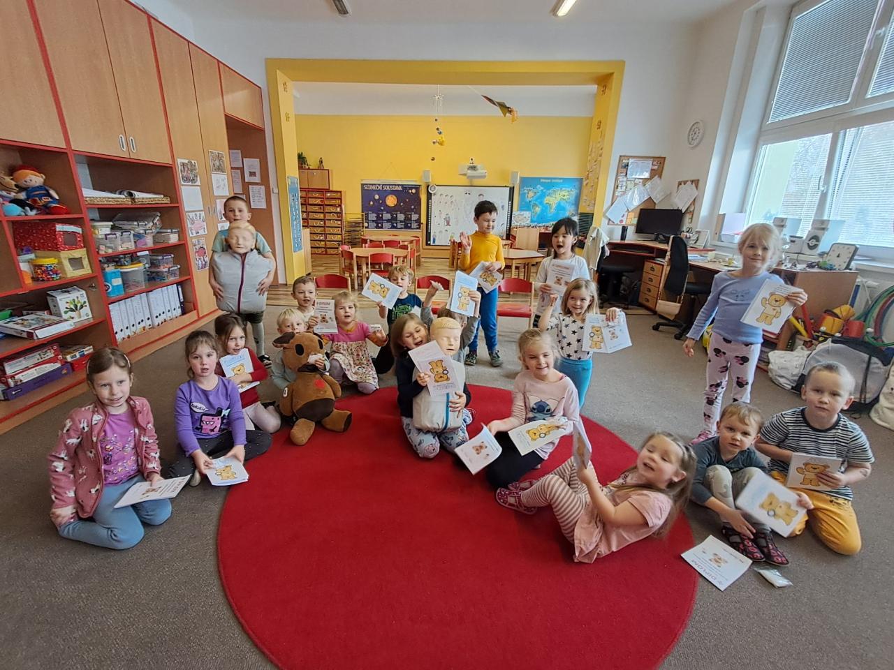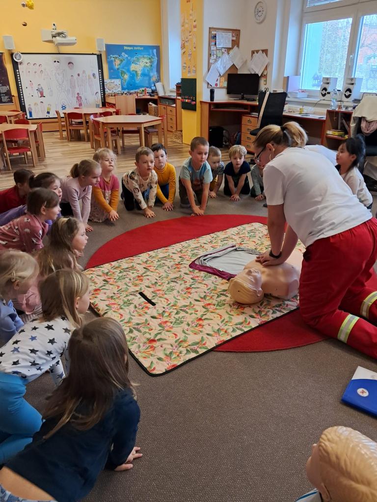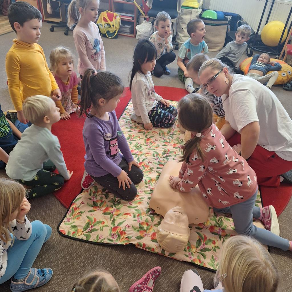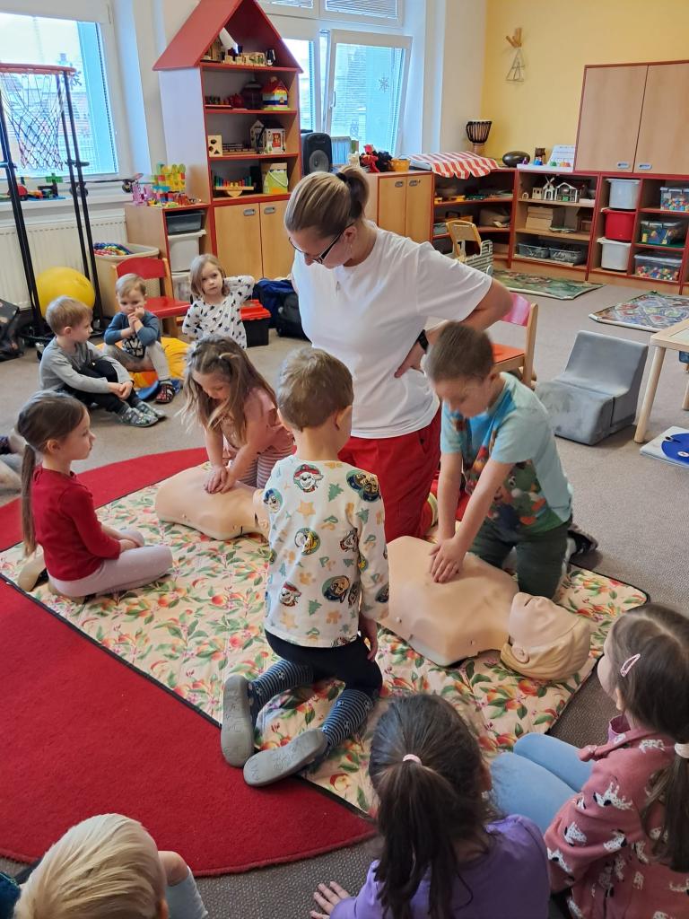 Každoročně v rámci tématu o člověku opakujeme jak je důležité pečovat o své zdraví a také o možnostech záchrany lidského života a 1. pomoci. Tentokrát jsme zachraňovali s méďou Bolístkou a došlo i na pokus záchrany paní učitelky tedy dospělé osoby. Děti si vedly skvěle, ale kéž jsme zdraví.-)